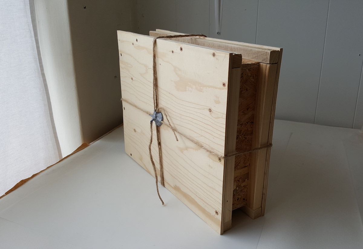 The work consists of a series of 37 abstract water colour paintings made as an experiment to form a new alphabet. Each one represents a single letter and is made in a quick single session. The letters were projected through the internet whilst the originals were kept in a sealed wooden box at the museum archives.