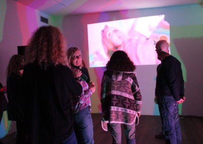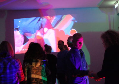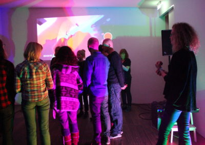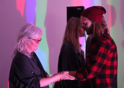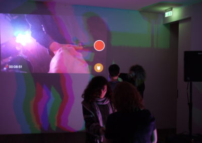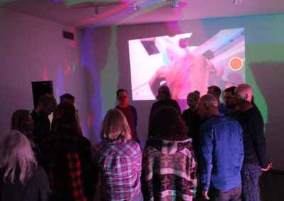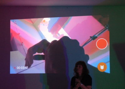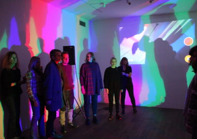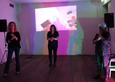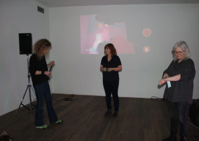 The performance is a collaboration between Eygló Harðardóttir, Elsa Dóróthea Gísladóttir and Karlotta Blöndal. Materials used were: graphite sticks, duct tape, RGB lights, go-pro camera and sound.